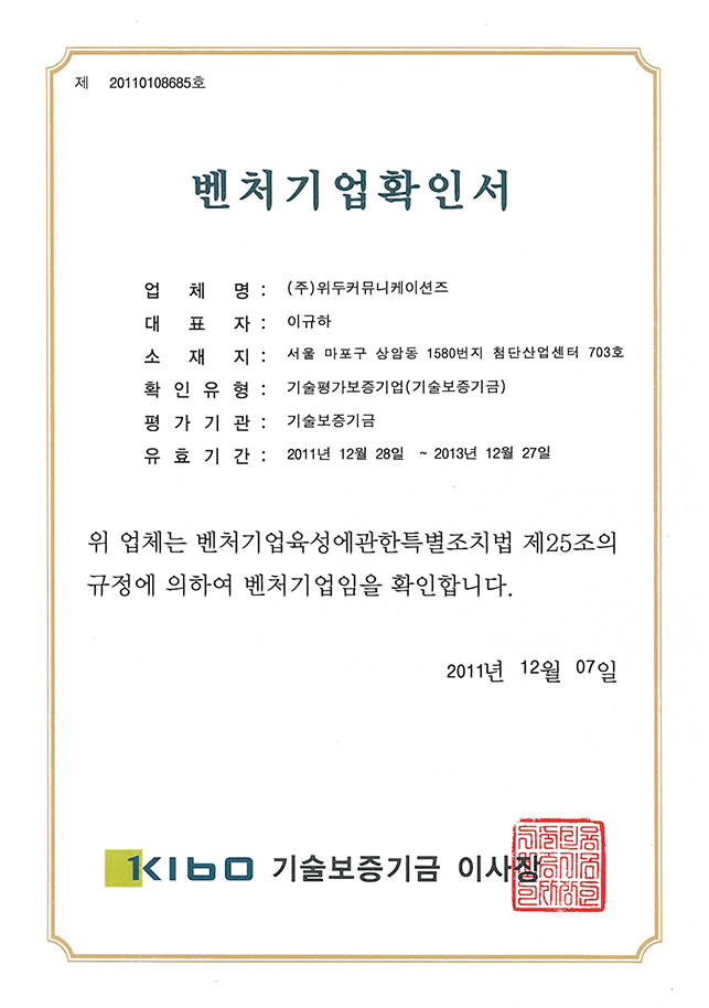 ㆍ 기술 신용 보증 – 벤처기업 인증