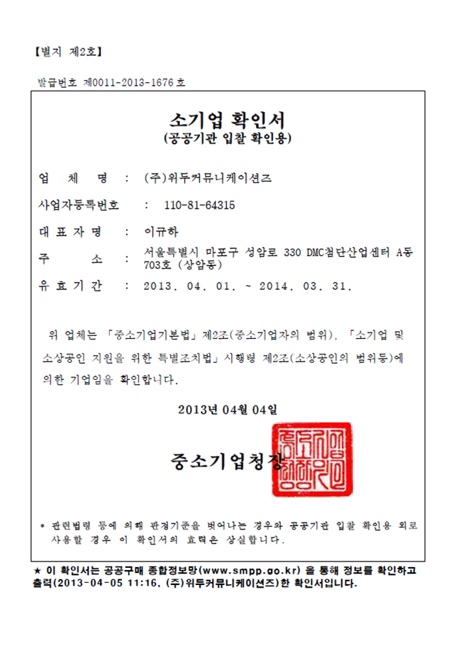 ㆍ 병무청 병역 특례업체 지정